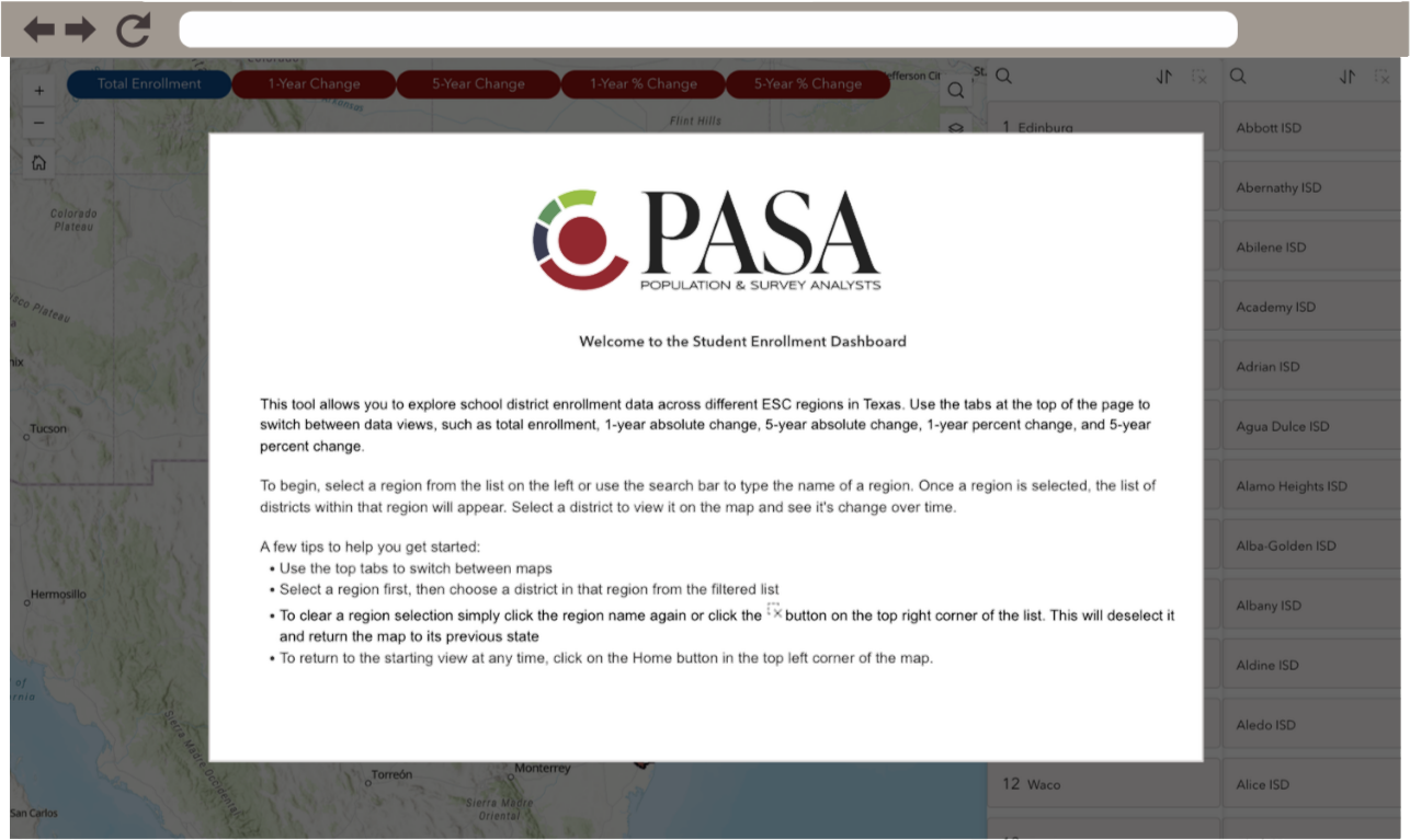 From interactive dashboards to real-time GIS mapping, PASA’s tools bring your district’s data to life, making it easier to plan, present, and act with confidence.