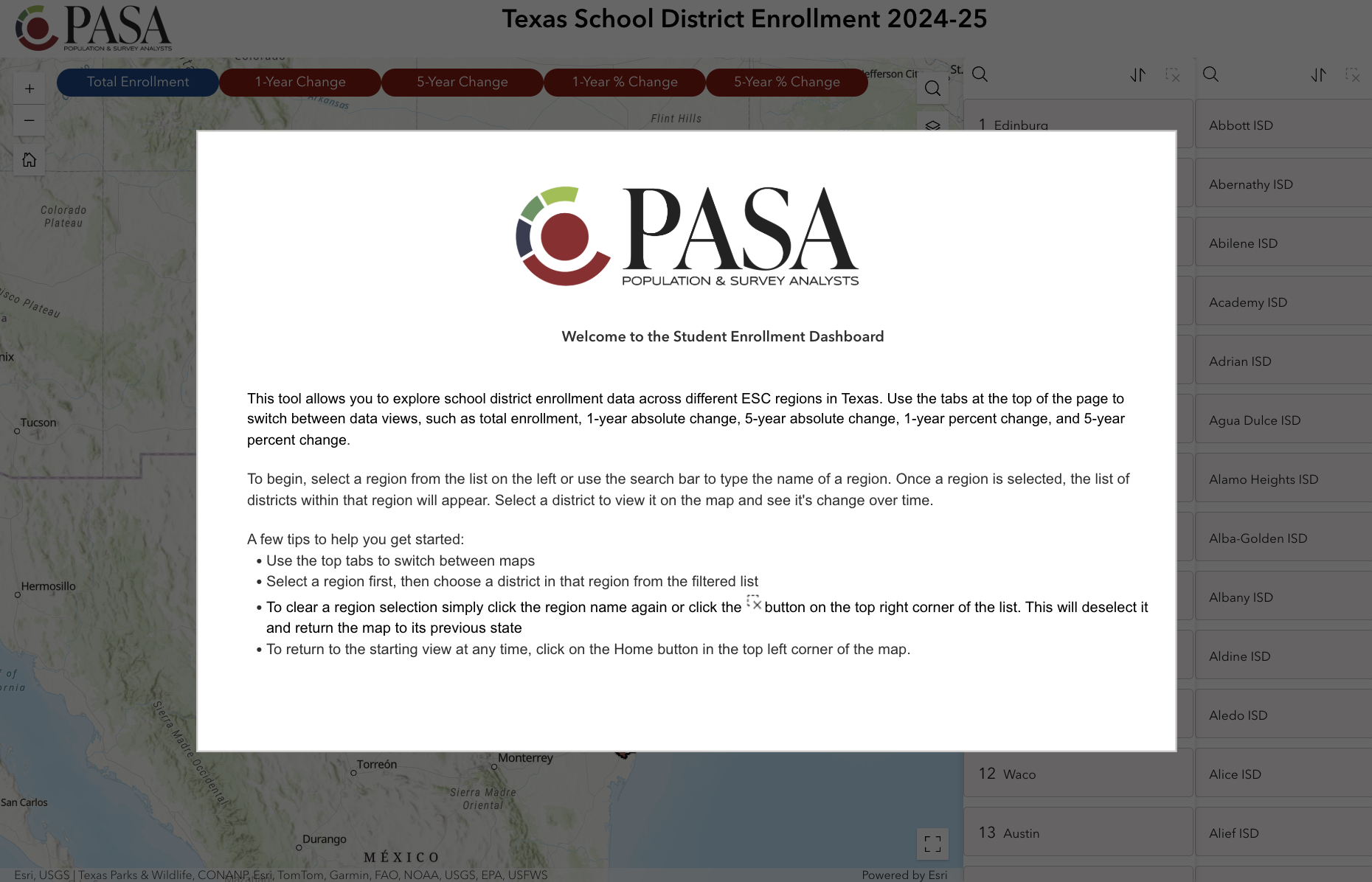 PASA’s interactive dashboards bring enrollment trends, housing growth, attendance zones, and demographic shifts into one clear, visual environment — so district leaders can explore the data behind every recommendation.